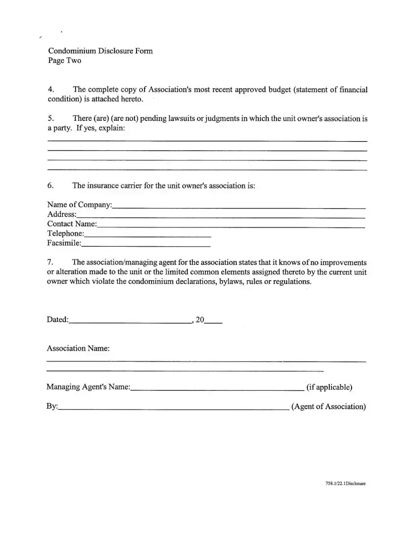 Each of these documents plays a vital role in providing a clear picture of the condominium association's status and the responsibilities of unit owners. Reviewing them in conjunction with the Act 221 Disclosure form can help ensure informed decisions are made during the buying or selling process.