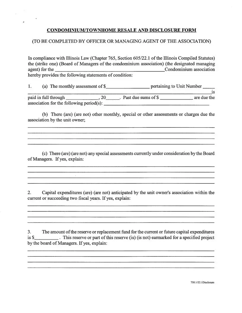Completing the Act 221 Disclosure form is a straightforward process. This form provides essential information about the condominium or townhome association and its financial condition. Follow these steps carefully to ensure accurate completion.