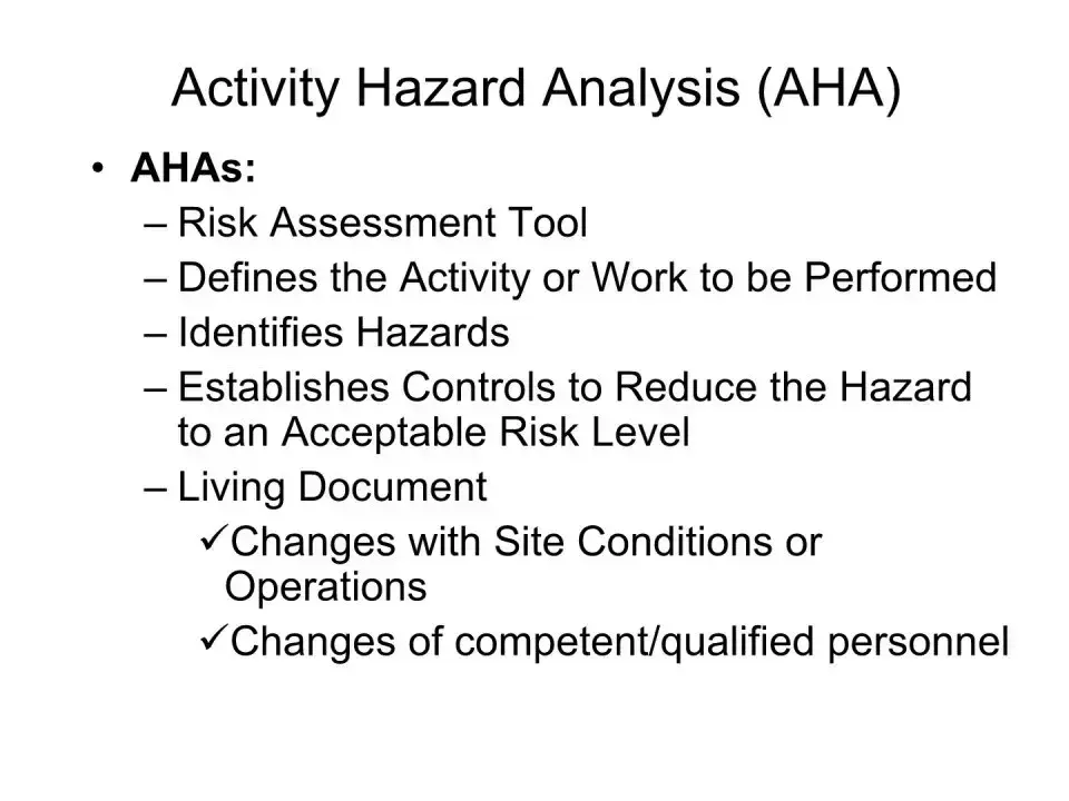 Some think that the AHA's sole purpose is to list hazards. In fact, it also establishes controls to mitigate risks and outlines the necessary training for personnel.