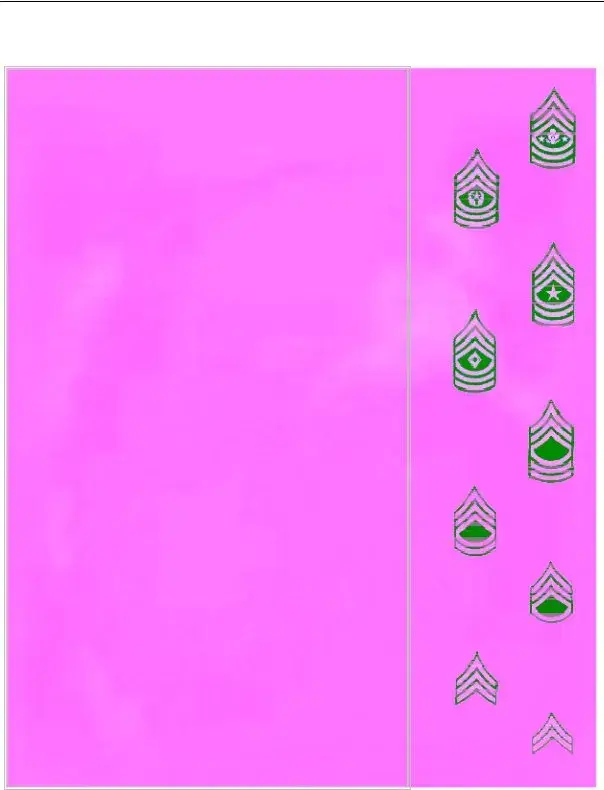 Officers in my unit will have maximum time to accomplish their duties; they will not have to accomplish mine. I will earn their respect and confidence as well as those of my soldiers. I will be loyal to those with whom I serve; seniors, peers and subordinates alike. I will exercise initiative by taking the appropriate action in the absence of orders. I will not compromise my integrity nor my moral courage. I will not forget, nor will I allow my comrades to forget that we are professionals, Noncommissioned officers, leaders!