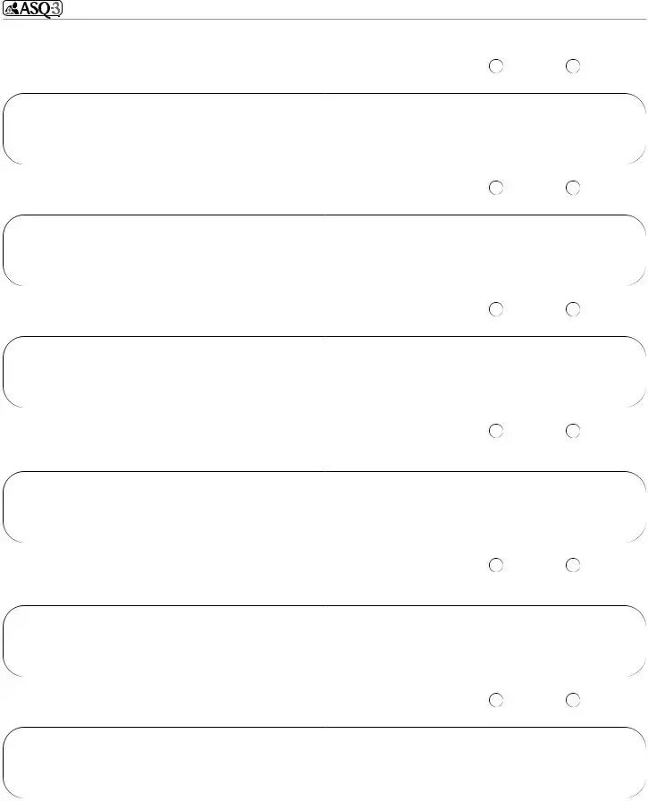 5. Ask your child to draw a picture of a person on a blank sheet of paper. You may ask your child, “Draw a picture of a girl or a boy.” If your child draws a person with head, body, arms, AND legs, mark “yes.” If your child draws a person with only three parts (head, body, arms, or legs), mark “sometimes.” If your child draws a person with two or fewer parts (head, body, arms, or legs), mark “not yet.” Be sure to include the sheet of paper with your child’s drawing with this questionnaire.