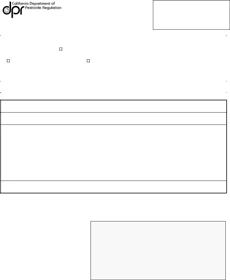 The California DPR 035 form is a crucial document for those looking to amend pesticide product registrations. This form serves as the official application to request changes to existing pesticide products, ensuring compliance with state regulations. It requires detailed information about the applicant, including the firm name, mailing address, and authorized representative's contact details. Additionally, the form asks for specific product information, such as the product brand name and U.S. EPA registration number. Applicants must specify the type of amendment they are seeking, which could range from adding a new crop or use to reducing precautionary statements on the label. It is essential to note that certain minor amendments do not require this application form. Completing the DPR 035 form accurately is vital, as incomplete submissions will not be processed. A cover letter detailing the requested changes, along with the necessary fees and product labeling, must accompany the application. Timely and accurate submissions can significantly expedite the amendment process, allowing for quicker compliance and market access.