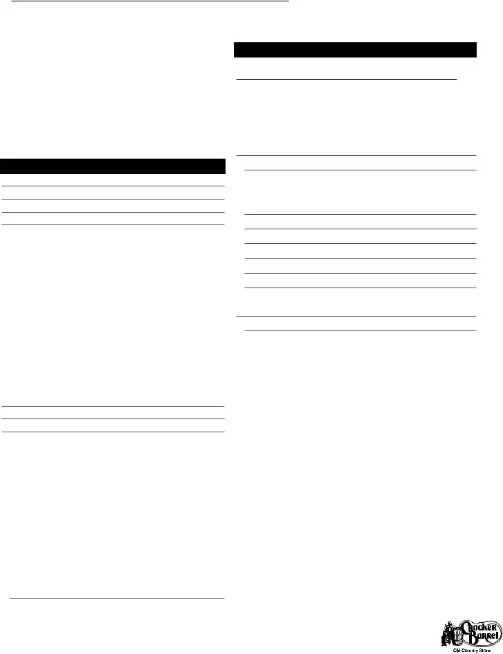 All applicants for employment by Cracker Barrel Old Country Store¨ must consent to background verifications. This form serves to provide necessary information in order to conduct the background verifications.Your accuracy and thoroughness will help expedite the processing of your application.