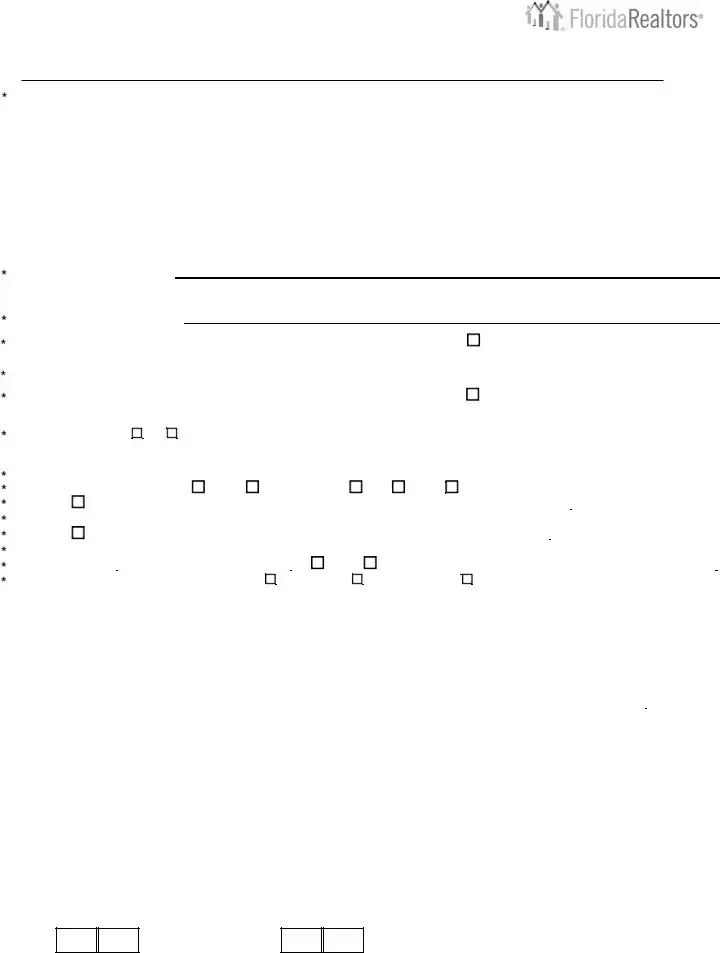 Florida REALTORS® makes no representation as to the legal validity or adequacy of any provision of this form in any specific transaction. This standardized form should not be used in complex transactions or with extensive riders or additions. This form is available for use by the entire real estate industry and is not intended to identify the user as REALTOR®. REALTOR® is a registered collective membership mark which may be used only be real estate licensees who are members of the NATIONAL ASSOICATION OF REALTORS® and who subscribe to its Code of Ethics. The copyright laws of United States (17 U.S. Code) forbid the unauthorized reproduction of this form by any means including facsimile or computerized forms.