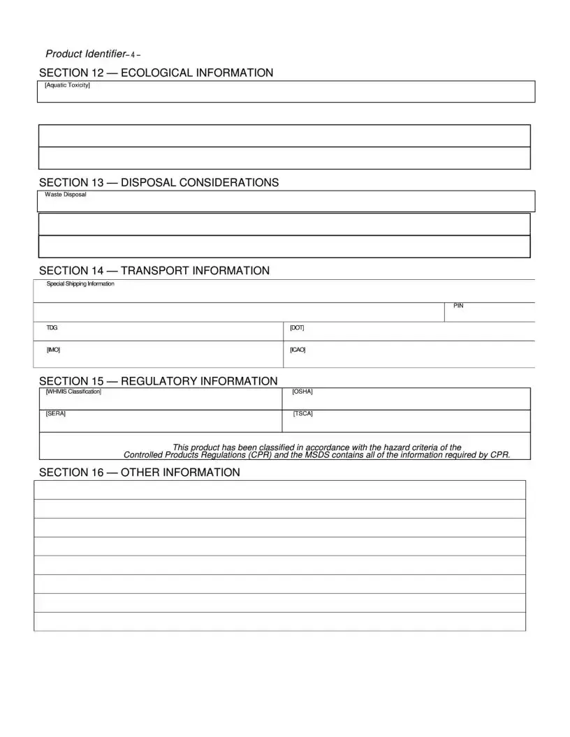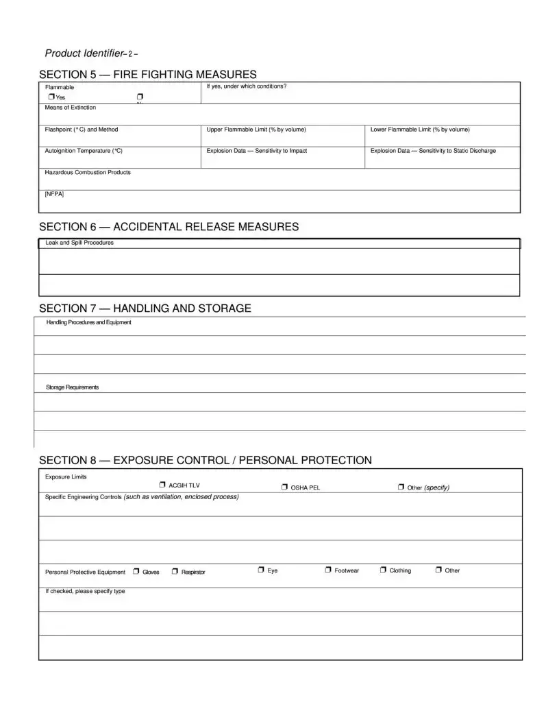 Identify the Product: The first section includes details such as the product identifier, manufacturer’s name, and emergency contact information. Make sure to fill this out accurately.